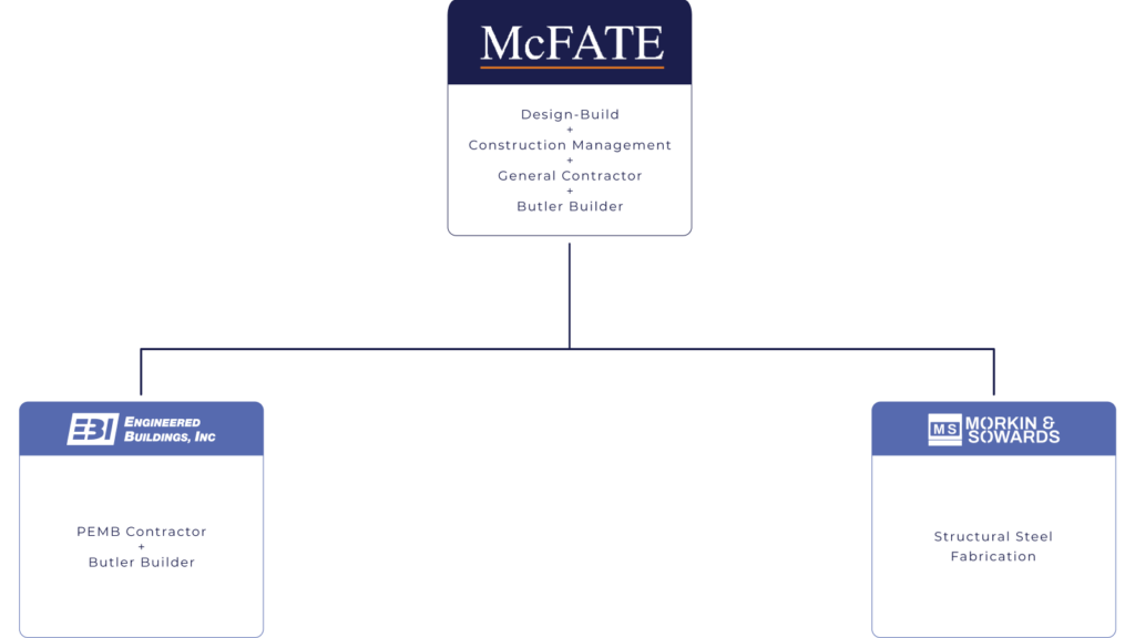Morkin and Sowards is a subsidiary company of The McFate Group. The McFate Group is a design-build and construction management contractor servicing the Midwest and Texas. The McFate Group has offered turnkey construction solutions and single source responsibility in this market for over 25 years. The McFate Group specializes in producing commercial and industrial structures and provides a full scope of services in all phases of construction, from design and budget development to completion. Metal building contractor Engineered Buildings, Inc. is another subsidiary of The McFate Group.